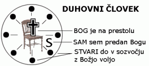 Vse se začne pri vprašanju pojmovanja duhovnega človeka, ki ga shematično prikazuje slika. Včasih to poenostavimo in rečemo: če je Bog na prvem mestu, so vse stvari na pravem mestu. Duhoven človek živi v sozvočju z Božjo voljo.