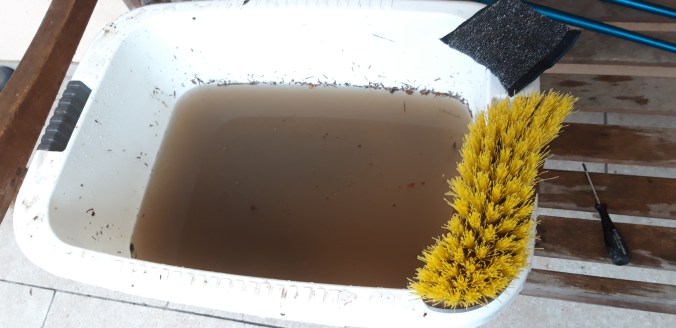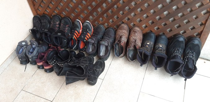 Danes sem bil pri podružnični cerkvi Marije Vnebovzete na Gori. Gor sem rinil še v trdni temi in ob tem vremenu ni čudno, da sem prišel domov z blatnimi čevlji. Pa niso bili to edini blatni čevlji pri hiši. Preko tedna se jih je nabralo kar nekaj. Lotil sem se dela. Rezultat je tule:
